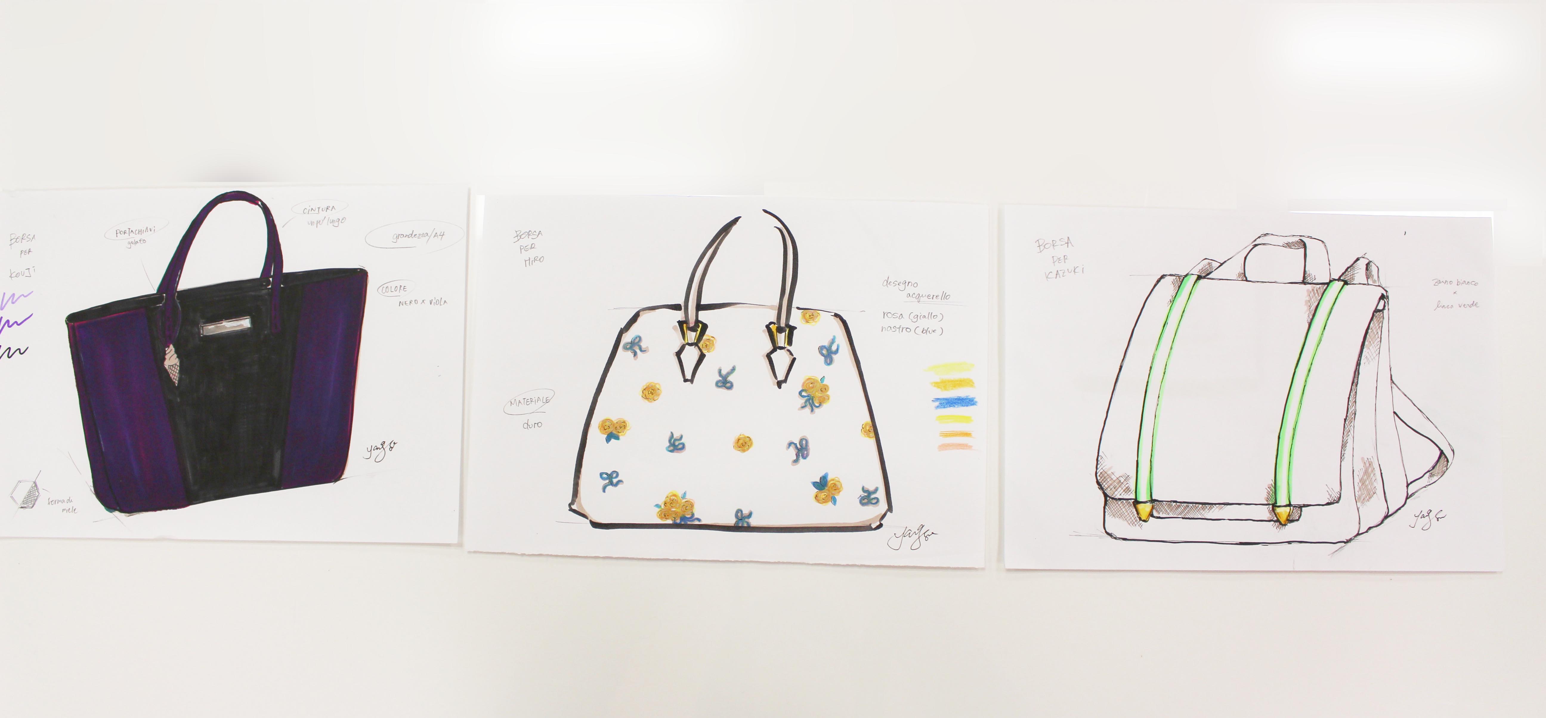 そして、たとえばヒロなら「黄色いバラ」「エレガント」などのキーワードに合ったモチーフ・形状のバッグを考え、実際のバッグのイラストに起こします。お客様のライフスタイルを考えたうえで、使い勝手とキャラの特徴のバランスをデザインに落とし込むのが大変でした。