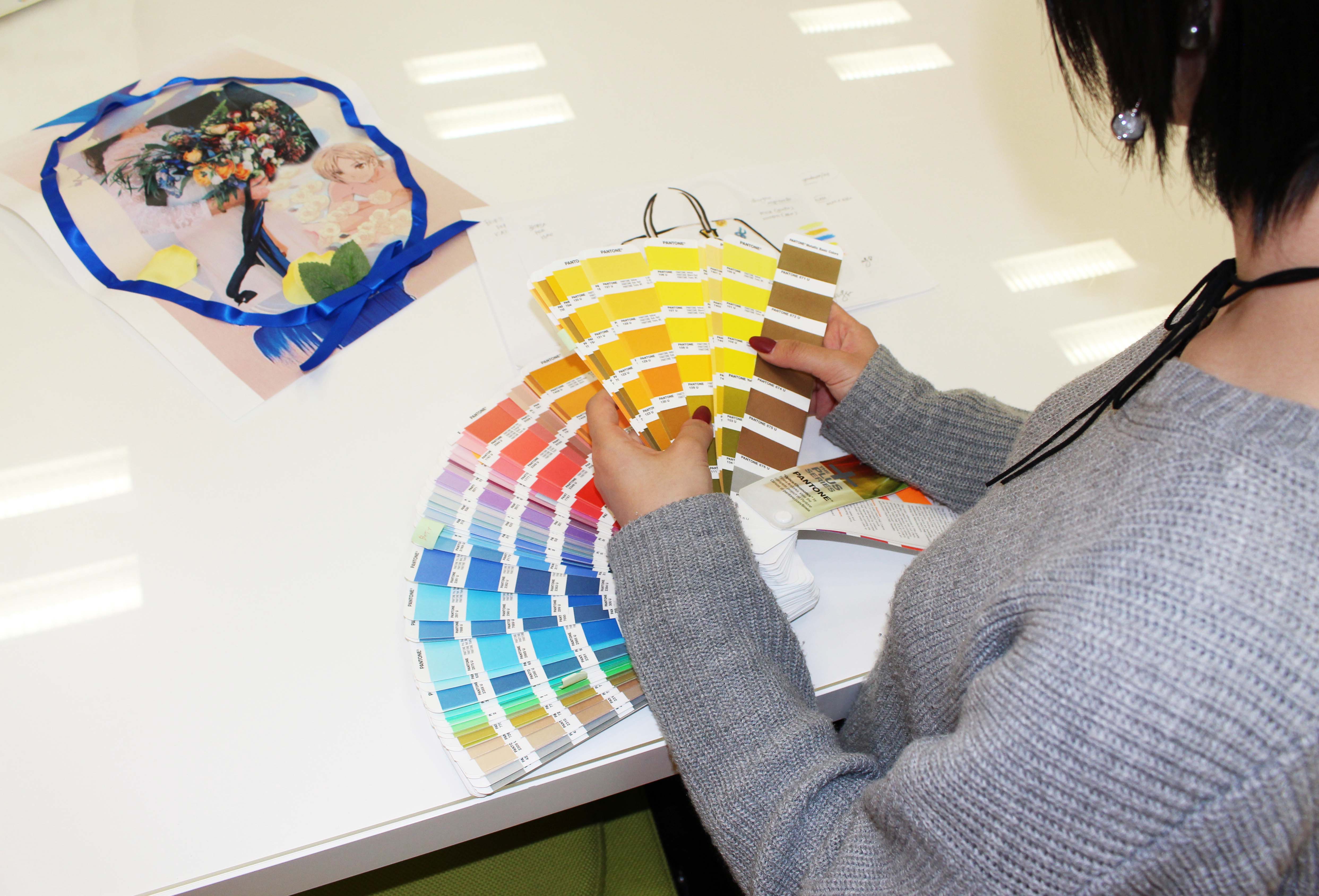 企画が固まったら権利元様に商品化の申請をします。もちろんどんな企画でも許諾がいただけるわけではないので、許諾が出るまではちょっとドキドキします。商品化の許諾がおりたら、実際使用する素材や価格、仕様なども考えながらデザインをさらにブラッシュアップします。こうして完成したものを権利元様に監修していただきます。