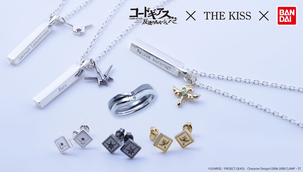 TVアニメ『コードギアス 反逆のルルーシュ』より、放送開始10周年を記念してジュエリーブランド・THE KISSとコラボレーションしたアクサセリーが発売される。今回登場するのは「コードギアス 反逆のルルーシュR2×THE KISS×BANDAI シルバーリング」「シルバーネックレス」「シルバーピアス」の3アイテム。