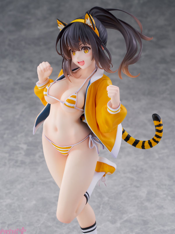 大胆露出の美肌はすべすべ肌仕様で肌触りも極上! 大人気イラストレーター・けけもつ氏のオリジナルキャラ『トラ娘のちょび美』がフィギュア化
