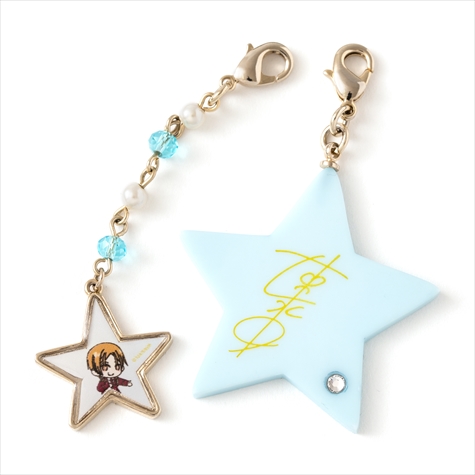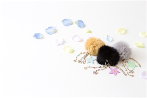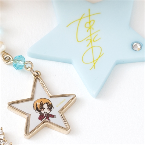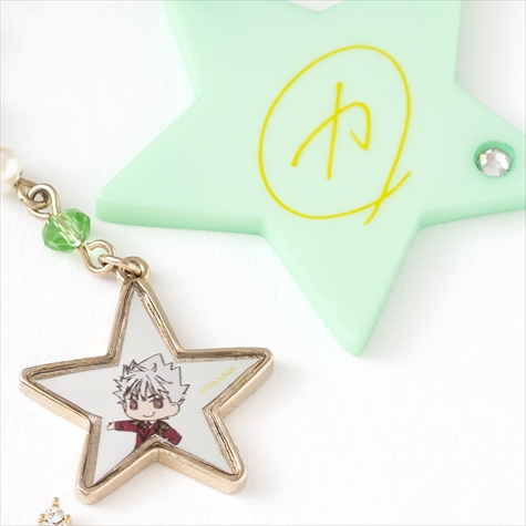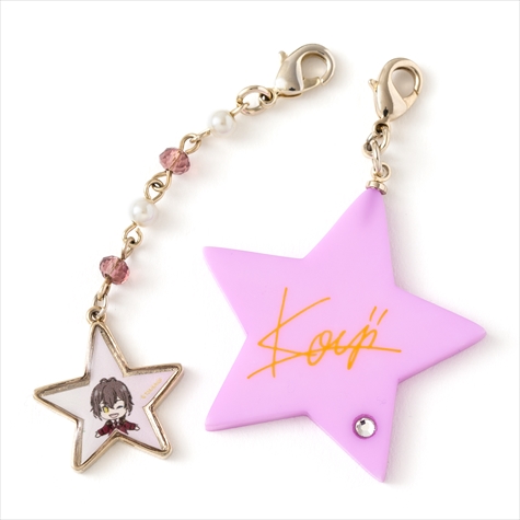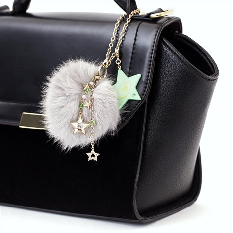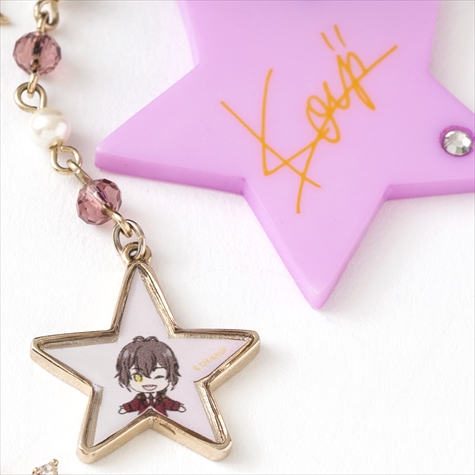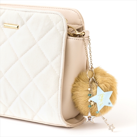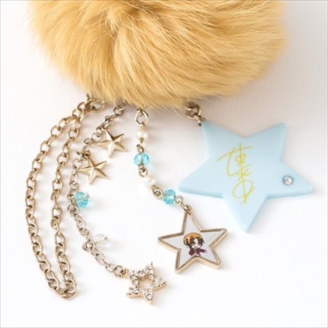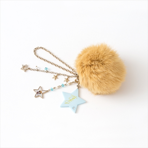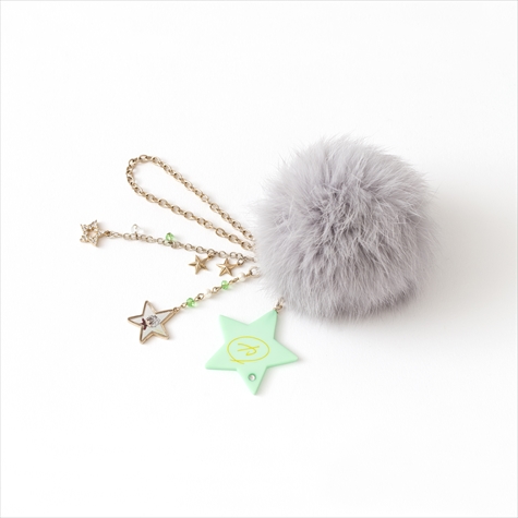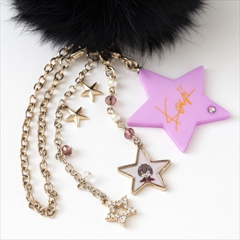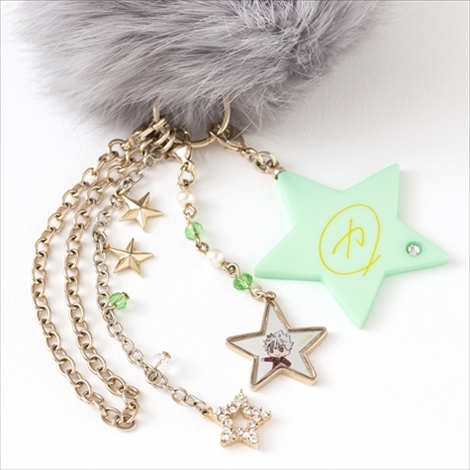 このファーはそれぞれコウジ、ヒロ、カヅキのヘアカラーと同じ色のラビットファーを使用しており肌触りは抜群。またファーには各イメージカラーのスワロフスキーと星がアクセントになったキラキラチェーン、取り外し可能なイラストパーツと星型サインパーツがセットになっている。イラスト&サインパーツは違うアイテムと組み合わせて使うなど、さまざまなアレンジが楽しめる。