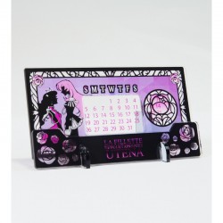 立体万年アクリルカレンダーはステンドグラス風のデザインで作品の世界観を表現したアイテム。プレートをずらし、月の初日(1日)を曜日に合わせることで1年中使うことができる。