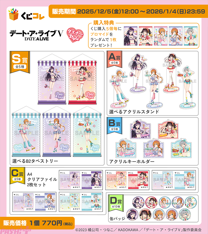 エディアの子会社・ティームエンタテインメントは、2025年12月5日(金)12:00より『くじコレ TVアニメ『デート・ア・ライブV』ダイナーStyle』をインターネットで購入できるオンラインくじサービス『くじコレ』にて販売開始しました。