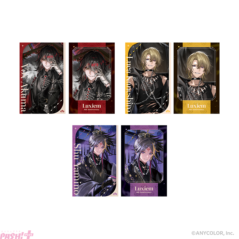 「Luxiem」は、ヴォックス・アクマ、ルカ・カネシロ、闇ノシュウの3名によるユニットで、今回発売する新グッズシリーズでは、“ヴィラン”をテーマにした描き下ろしビジュアルを採用しています。普段の清らかで優雅な雰囲気から一転し、今回のビジュアルでは“悪役”的な表情や黒を基調としたコスチューム、圧倒的なオーラをまとった3名を楽しめます。いつもとは異なる、ラグジュアリーでクールな一面をご堪能ください。