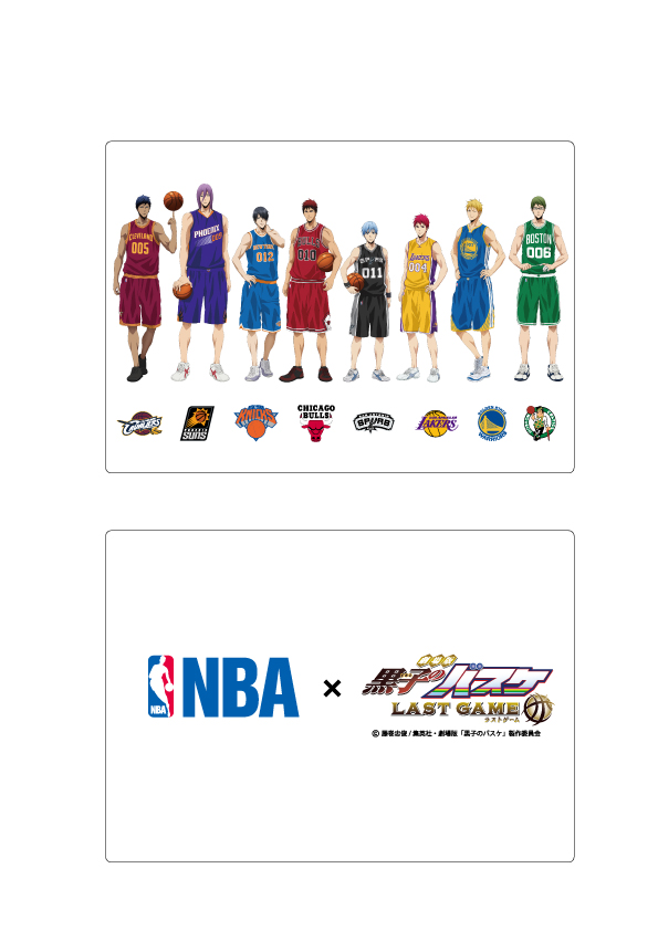 『劇場版 黒子のバスケ LAST GAME』と北米男子プロバスケットボールリーグ「National Basketball Association(通称「NBA」)」とのコラボレーション『NBA×劇場版 黒子のバスケ LAST GAME』より、オリジナルグッズの情報が公開された。