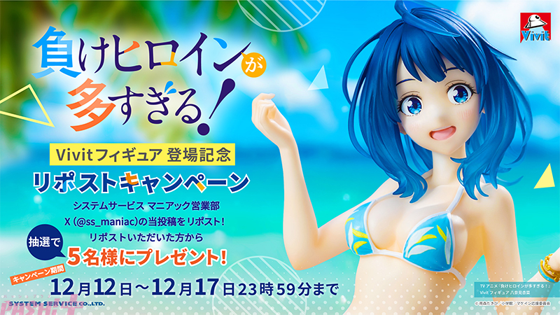 システムサービスは、「Vivitフィギュア」より「TVアニメ『負けヒロインが多すぎる!』八奈見杏菜」を2025年12月に順次アミューズメント施設にて展開します。