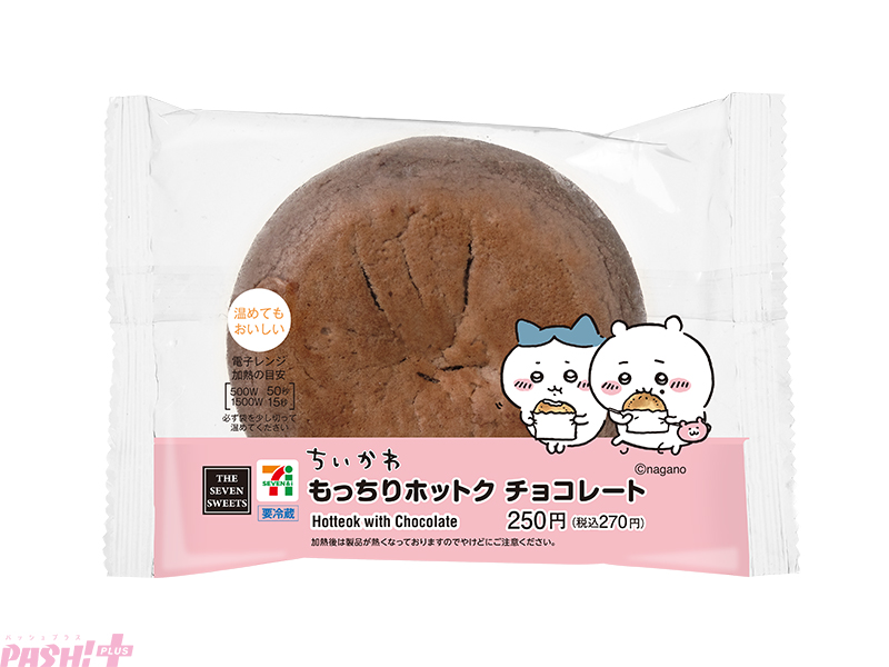 ちいかわとリボンをなくしてしまったハチワレが食べていたおやきをイメージした商品。ビターな味わいのチョコレートが入ったもちもち食感のホットクです。