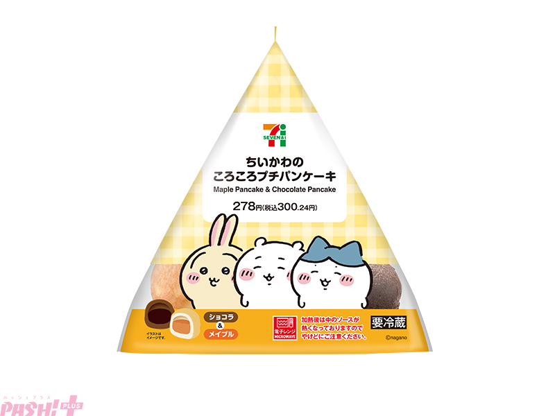 ちいかわとうさぎが食べていた巨大なホットケーキをイメージし、食べやすいサイズにした商品。ショコラとメイプルの2つの味が楽しめる甘みの詰まったパンケーキになりました。