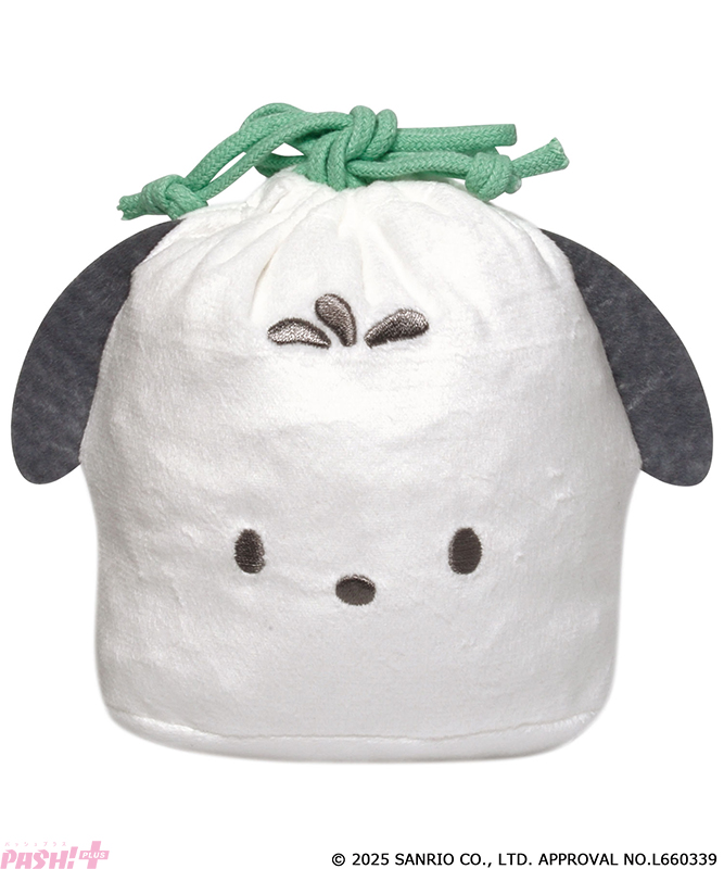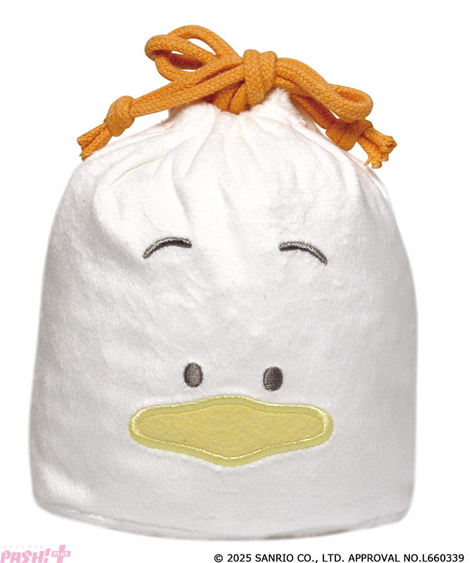 【サンリオ】「はぴだんぶい」がふわふわ素材のフェイス巾着になって登場! 『サンリオキャラクターズ つやつやキルトポーチ』が「かぷえぼ」にて展開
