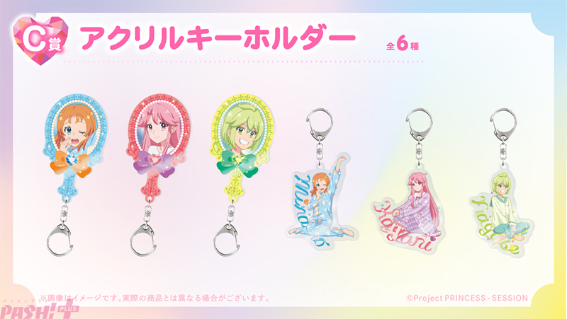 C賞:アクリルキーホルダー 全6種 サイズ:本体 最大 W60mm×H60mm 以内/厚さ 3mm