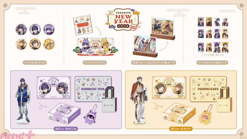 【にじさんじ】剣持刀也、伏見ガクの「TOGABITO New Year 2026 -AKEOME-」グッズが登場! 新年のある一日を過ごす2人がテーマの撮りおろしビジュアル使用【咎人福袋2026】
