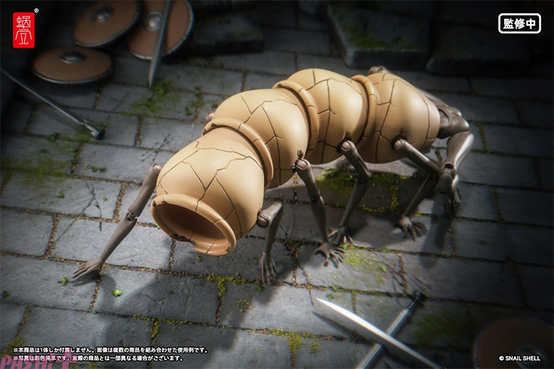また、壺の表面にはつや消しトップコートとスミ入れが施されており、リアルな質感を再現しています。本体の手足や胴体の関節部には、スネイルシェルの汎用ジョイントサイズを採用しており、他製品のパーツと組み替えることが可能です。