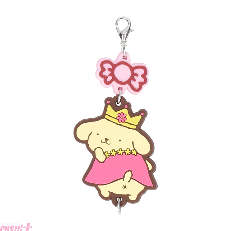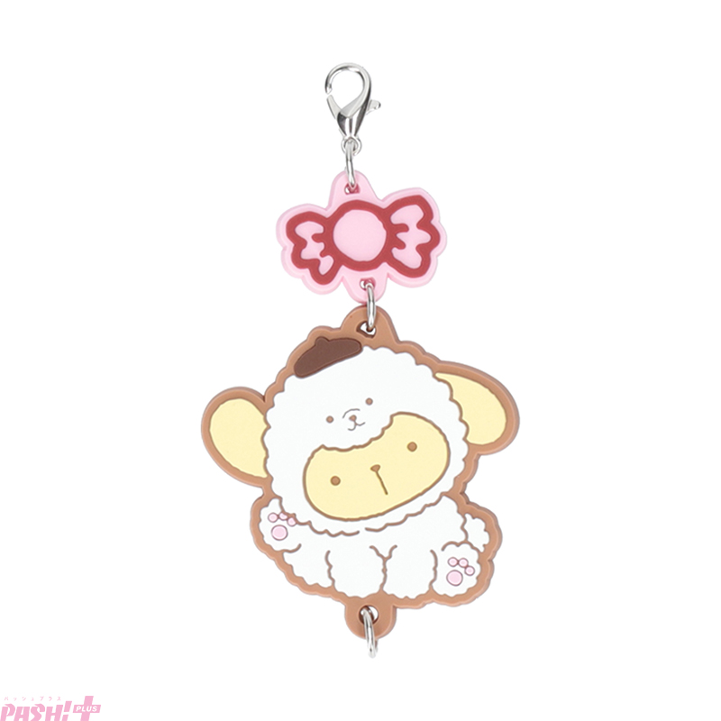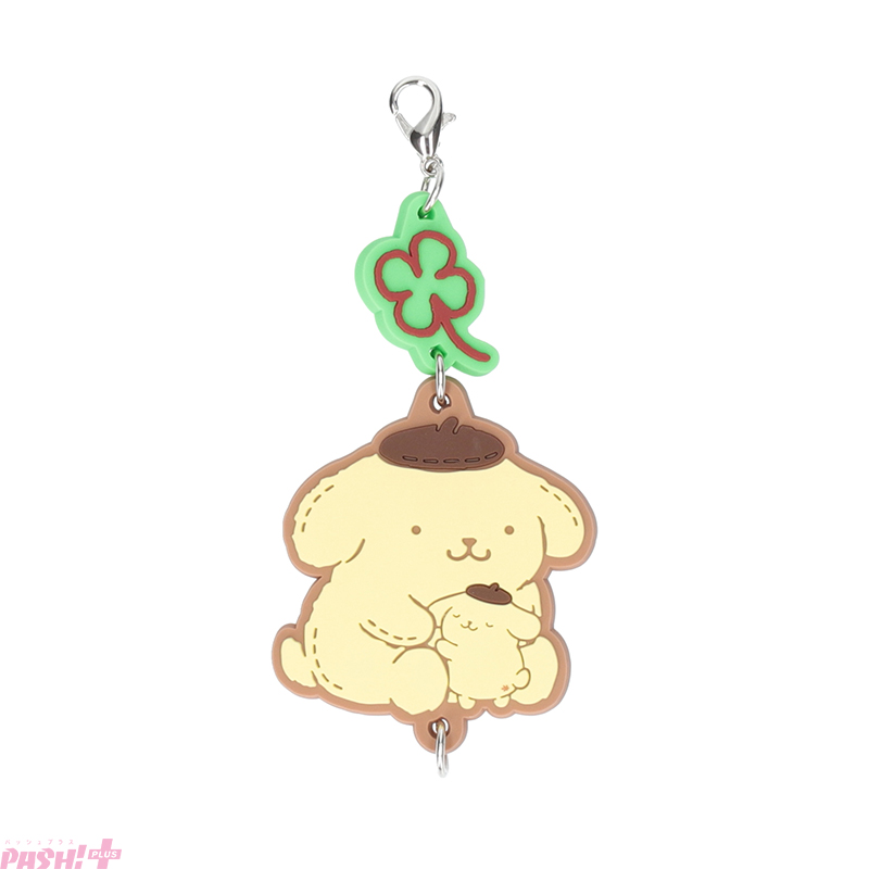 また、全ての商品にクローバーまたはキャンディのチャームが付き、裏面には30周年ロゴをプリントしました。さらに、複数のラバーを上下に繋げて組み合わせて楽しめるよう、カニカンフック付きです。ポムポムプリン30周年のキーメッセージ「むずかしいこと、しらんぷりん♪」のように、のんびりマイペースで癒やされる、さまざまなポムポムプリンの姿を集めてみてください。