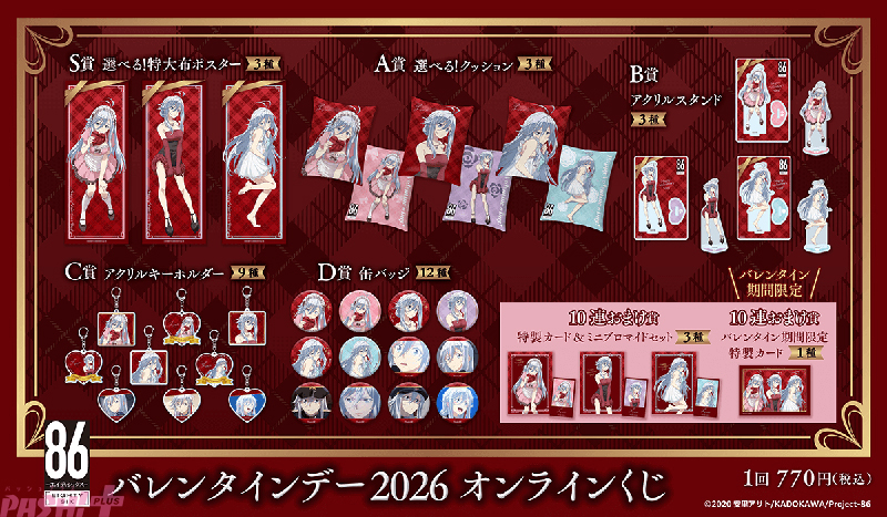 KADOKAWAは、運営するオンラインくじサービス「くじ引き堂」において、TVアニメ『86―エイティシックス―』の豪華賞品が手に入る<TVアニメ 「86―エイティシックス―」バレンタインデー2026 オンラインくじ>を、2026年2月12日(木)12時より販売します。