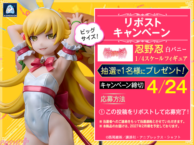 A・DIMENSION(Aディメンション)は、『〈物語〉シリーズ 忍野忍 白バニーVer. 1/4スケールフィギュア』を発売決定。予約受付を実施中です。