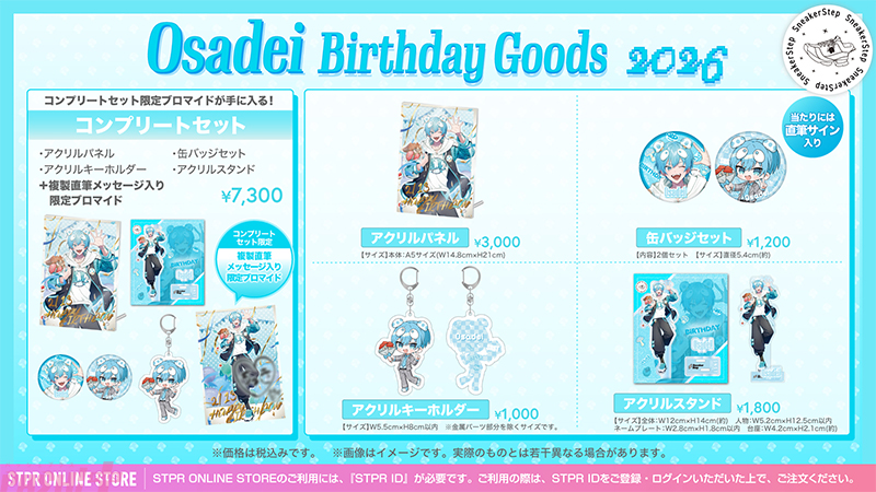 STPRは、2.5次元歌い手アイドルグループ「すにすて – SneakerStep Prod.STPR MUSIC(すにすて)」の「おさでい」の誕生日(2月13日)を記念した「おさでい BIRTHDAY GOODS 2026」の販売を2026年2月13日(金)よりSTPR ONLINE STOREにて開始しました。
