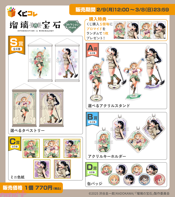 エディアの子会社・ティームエンタテインメントは、2026年2月9日(月)12:00よりTVアニメ『瑠璃の宝石』のオリジナルグッズが当たる『くじコレ「瑠璃の宝石」【コレクションStyle】』を、インターネットで購入できるオンラインくじサービス『くじコレ』にて販売開始しました。