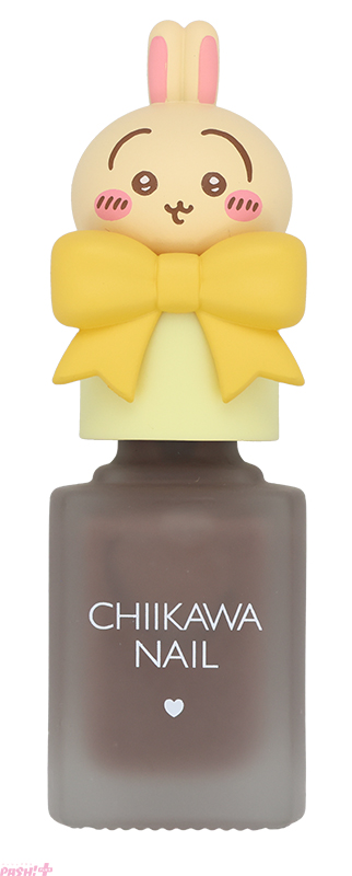 新商品は「ちいかわ」のかわいいネイルシリーズ。ちいかわ、ハチワレ、うさぎ、モモンガの全4キャラクターのキャップがついたデザインで、それぞれ異なる色のリボンがあしらわれています。