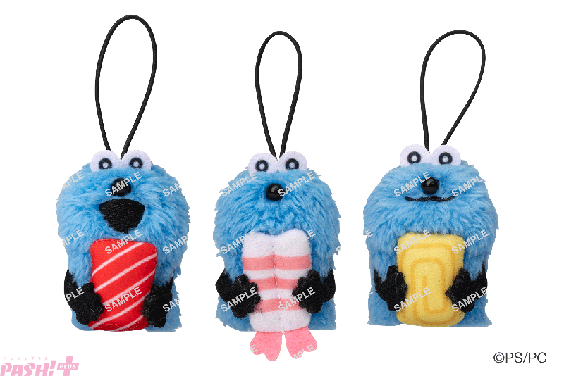 おすしのネタをギュッと抱えるスンスンの、指人形としても遊ぶことができるコラボ限定マスコットです。