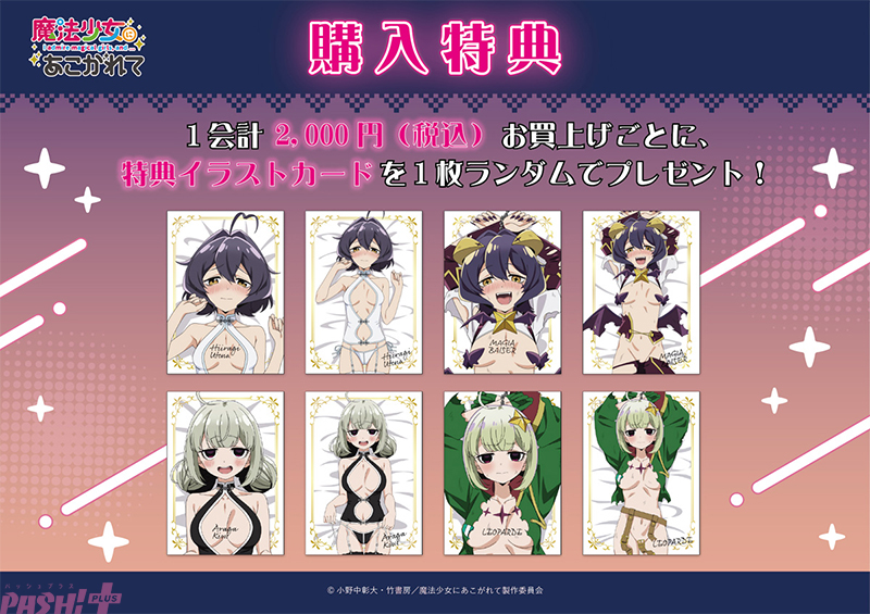 TVアニメ『魔法少女にあこがれて』関連商品を2,000円(税込)お買い上げごとに特典カード(全8種)をランダムで1枚プレゼント。