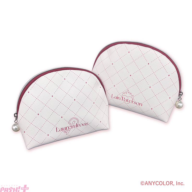 ポーチのデザインは購入店舗によって異なります。ローレン・イロアス、レイン・パターソンのネームロゴをあしらったデザインと二人のファンマークをドット絵で表現したデザインの全2種で、ここでしか手に入らないオリジナルデザインとなっています。
