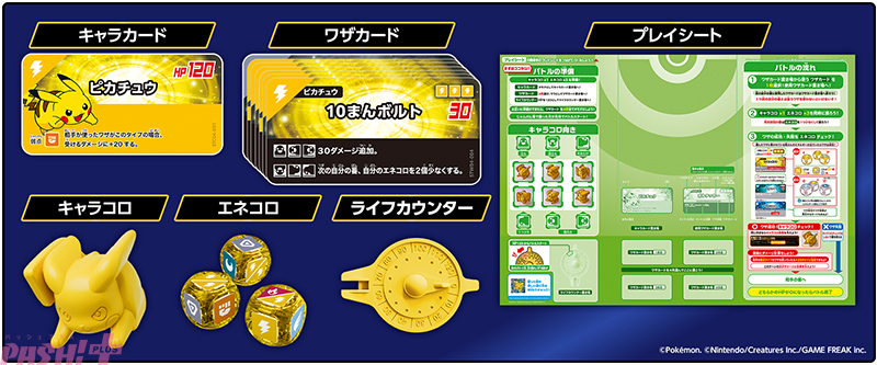 サイコロ型のポケモン“キャラコロ”。キャラコロは普通のサイコロと異なり、ポケモンの形になっているため、そのポケモンの形によって出る向きの確率が変わります。