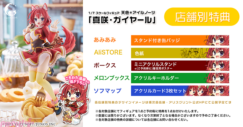 アリスグリントは、大人気ゲーム『天色*アイルノーツ』より、「真咲・ガイヤール」を1/7スケールでフィギュア化し、予約受付中です。