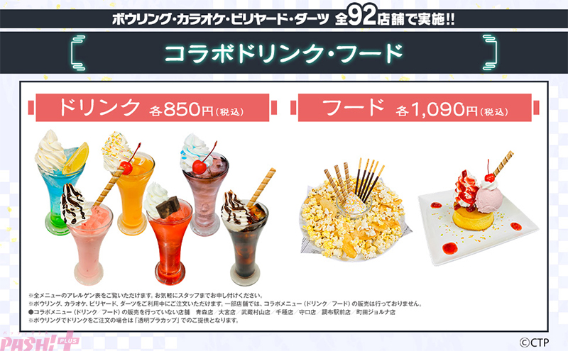 全国のボウリングとカラオケ、店舗でコラボメニューを販売します。各店舗で販売する対象メニューを注文いただいたお客様には、コラボメニュー限定ノベルティをプレゼントします。