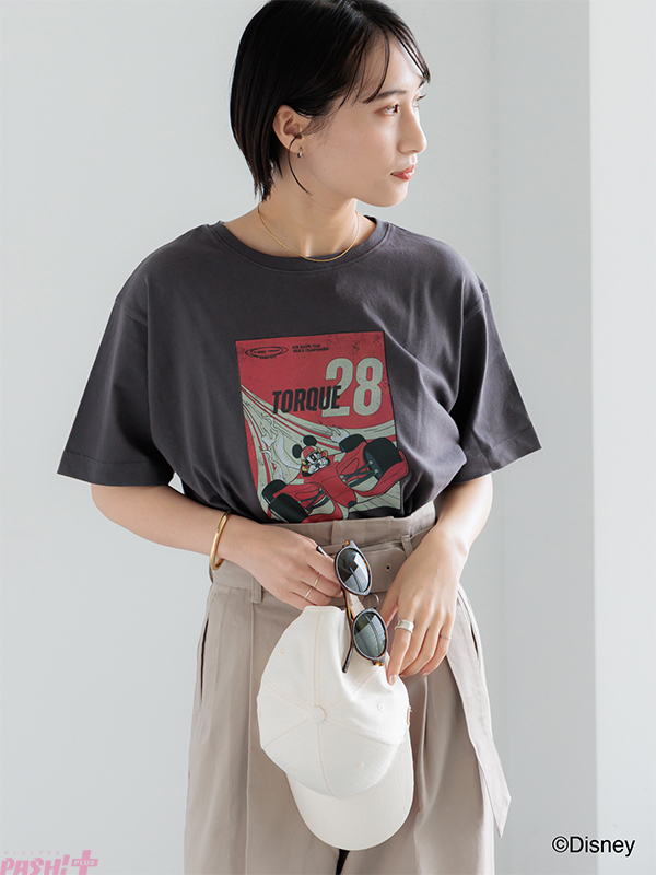 フロントプリントTシャツには、レーシングポスターを思わせるグラフィックと「ミッキーマウス」を組み合わせた、ヴィンテージライクなアートを採用。ロゴプリントTシャツには、モータースポーツをイメージしたロゴやナンバリングをあしらい、日常のスタイリングにも取り入れやすいデザインに仕上げました。一枚での着こなしはもちろん、ジャケットやカーディガンなどのインナー使いにもおすすめです。「アーバンフェミニティ」をキーワードとするTe chichiならではの、さりげない遊び心とこなれ感を添えたTシャツコレクションにぜひご注目ください。