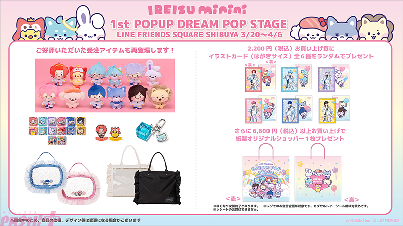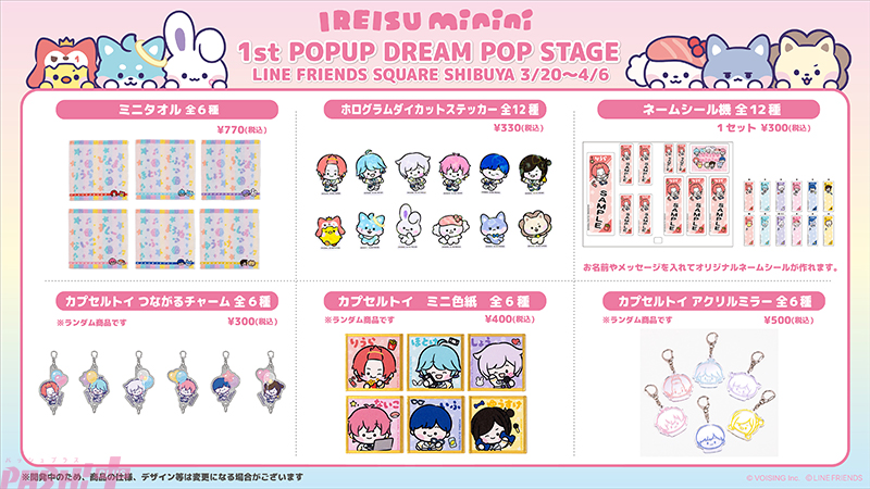 VOISING所属の2.5次元アイドルグループ「いれいす」と、世界的キャラクターブランド「LINE FRIENDS」のコラボレーションによって誕生したキャラクター「いれいすminini」の世界観を楽しめる初の単独POPUP『いれいすminini DREAM POP STAGE』を、2026年3月20日(金)よりLINE FRIENDS SQUARE SHIBUYAにて開催します。