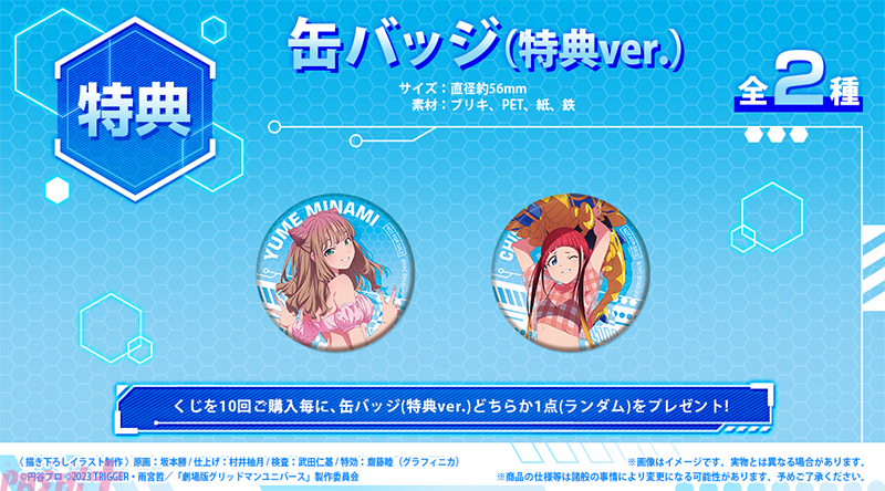 2024年6月21日~7月18日の期間に販売し好評となった「『グリッドマン ユニバース』オンラインくじ 2024 Part2」を、同アニメの新作オンラインくじ「『グリッドマン ユニバース』オンラインくじ 2026 feat.アカネ」の販売開始にあわせて再販売。