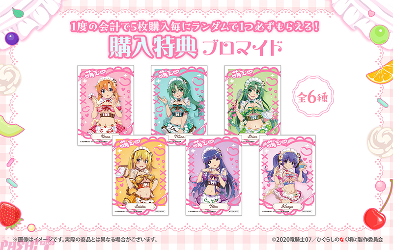 TVアニメ『ひぐらしのなく頃に 卒』WEBくじシリーズ第11弾となる今回は、スイーツ×メイドをテーマにキャラクターデザインの渡辺明夫先生による全6キャラクターの描き下ろしとなっています。