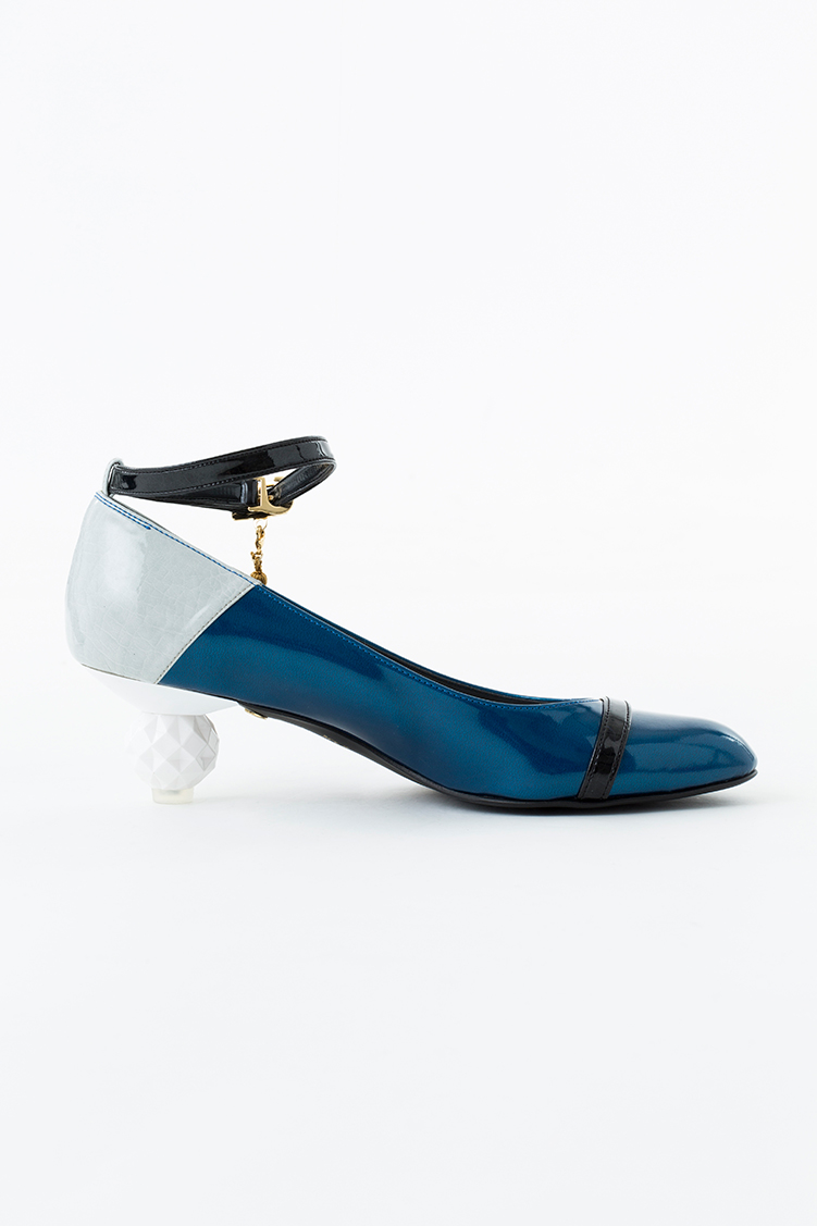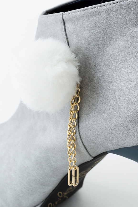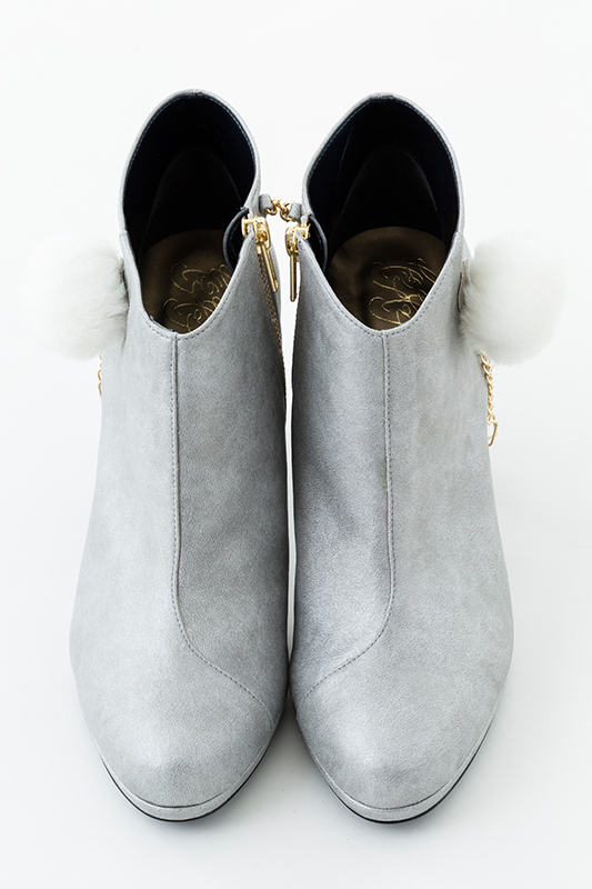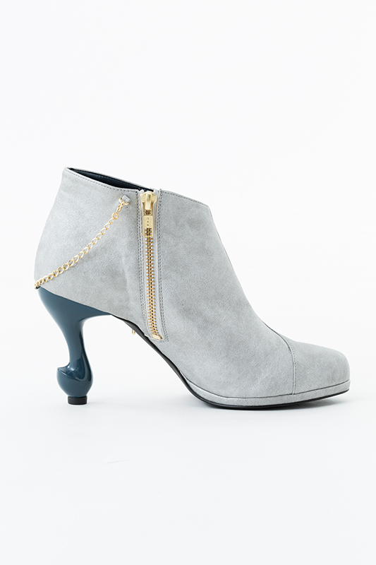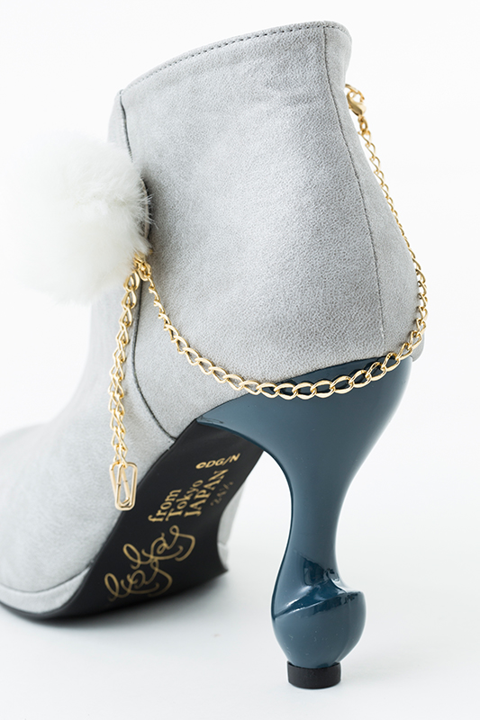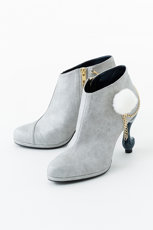 鶴丸国永をイメージしたデザインのブーティです。本体は品のいいシルバーで、足元を彩ってくれます。鶴丸の着物のような、ゴールドのチェーンやポンポンを装飾したデザイン! ヒールは鶴丸の鎧をイメージした深く濃いブルー。鶴丸の雰囲気を余すことなく詰め込みました。