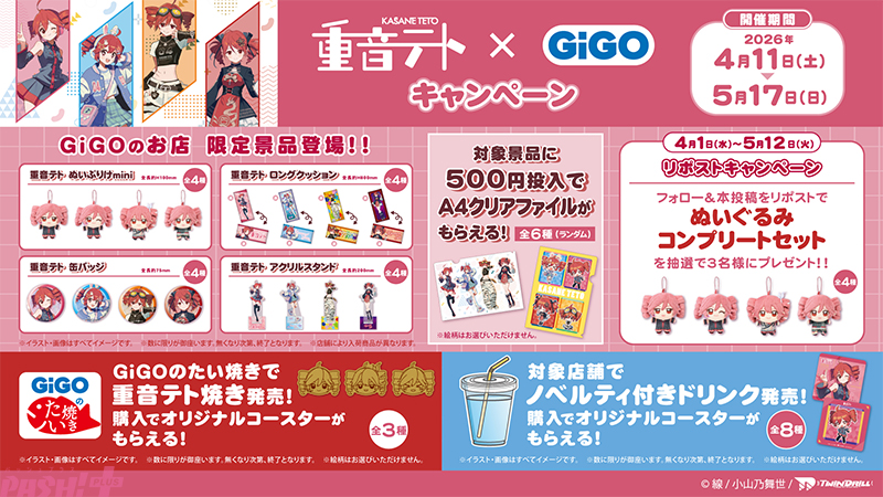 GENDA GiGO EntertainmentはGiGOグループのお店において、2026年4月11日(土)より、クリプトン・フューチャー・メディアが手掛ける『重音テト』とコラボレーションした、「重音テト×GiGOキャンペーン」を開催します。