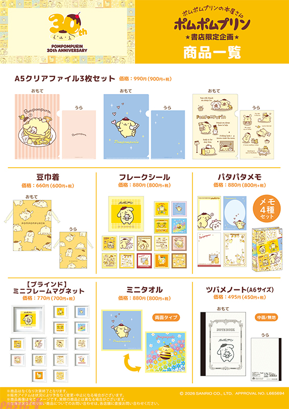【サンリオ】ポムポムプリンデビュー30周年! 公式アートブック発売を記念して歴代デザイン使用の「ポムポムプリン30th記念 ポムポムプリンの本屋さん3」書店限定グッズが新発売