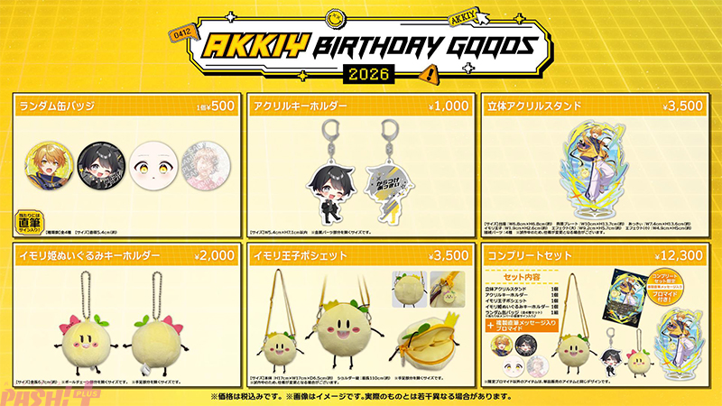 2026年4月12日(日)に誕生日を迎えた「あっきぃ」のバースデーグッズの受注販売が、同日2026年4月12日(日)よりSTPR ONLINE STOREにて開始。ラインナップは、ランダム缶バッジ・アクリルキーホルダー・立体アクリルスタンド・イモリ姫ぬいぐるみキーホルダー・イモリ王子ポシェットの5アイテム。
