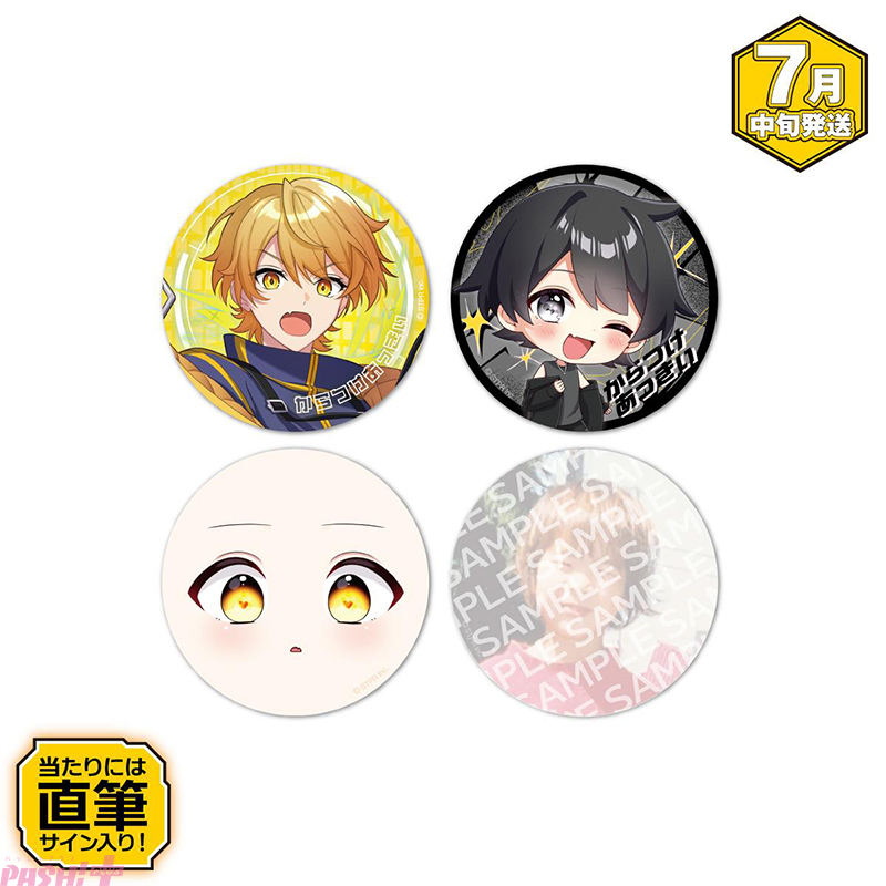 コンプリートセットには、セット限定特典として複製直筆メッセージを添えたブロマイドが封入されています。ランダム缶バッジには、なんと「あっきぃ」の幼少期の実写が含まれているという、「あっきぃ」らしさが盛り込まれたラインナップです。