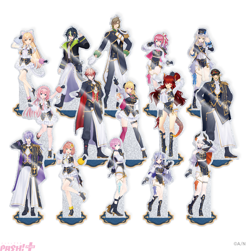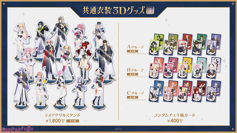 「にじさんじ」から、総勢15名のにじさんじライバーが、オリジナル共通衣装をまとった姿で登場! グッズラインナップは、ラメアクリルスタンドとランダムチェキ風カードになります。