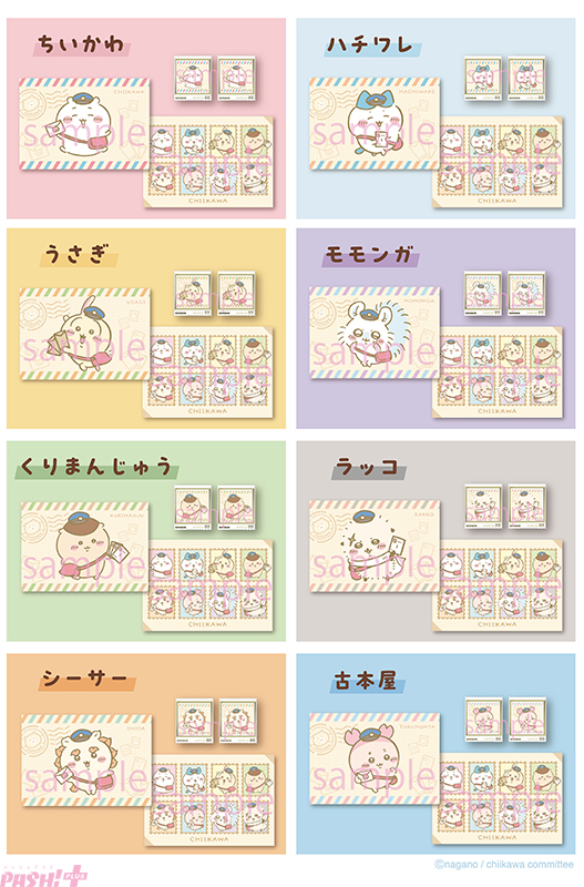 【ちいかわ】郵便屋さん姿のちいかわ、ハチワレ、うさぎたちがかわいい! 切手+ポストカードセットや切手型バッジがラインナップの『ちいかわ 郵便局グッズ』が受注開始