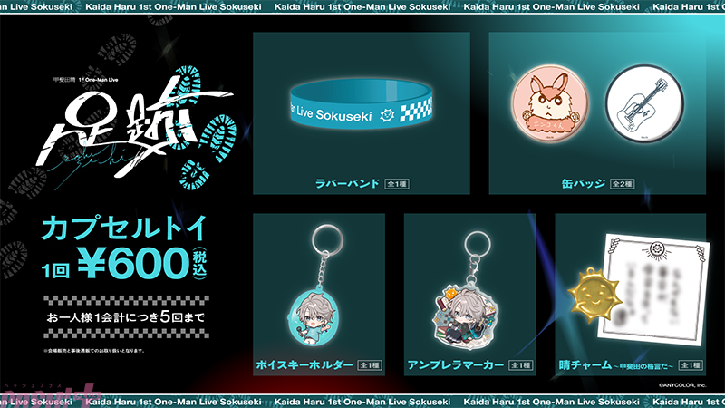 「甲斐田晴 1st One-Man Live -足跡-」グッズ 販売概要