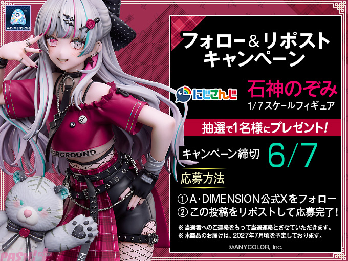 A・DIMENSION(Aディメンション)は、『にじさんじ 石神のぞみ 1/7スケールフィギュア』を発売決定。予約受付を2026年4月27日(月)10:00より開始しました