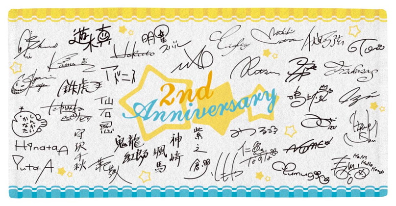K賞には各ユニットのメンバーたちのサイン(プリント)が入ったミニタオルが、L賞には36人のメンバー全員がそれぞれデザインされた、2周年記念のピンズが登場だ。さらにラストワン賞では、36人のメンバー全員のサイン(プリント)が入ったバスタオルがもらえる。