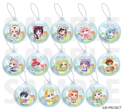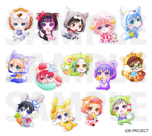特典対象商品の会計5,400円(税込)ごとに、ミニアクリルストラップ(全14種)がランダムで1つ付属する。エイプリルフール限定描き下ろしSD使用。