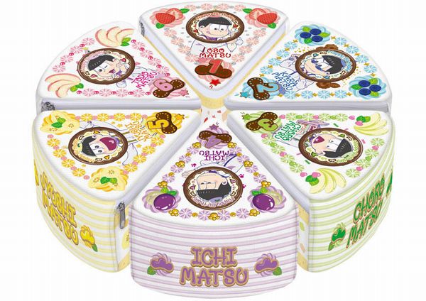 A賞は、6つ子たちが仲よくケーキをデコレーションしている様子を描きおろしたテーブルクロスが登場。B賞~G賞には、6つ子たちをデザインしたショートケーキ型のポーチと、缶バッジのセットが。すべてのポーチを集めると大きなホールケーキになり、パッケージもケーキボックス風の豪華仕様になっている。