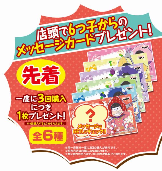 くじ発売を記念し、発売日よりオリジナルメッセージカードのプレゼントが実施。同一店舗で3回購入につき1枚がもらえる(例:6回購入で2枚)。