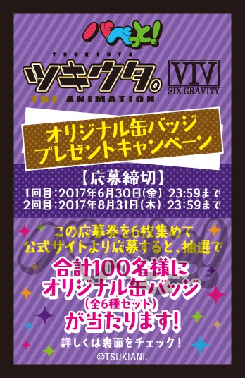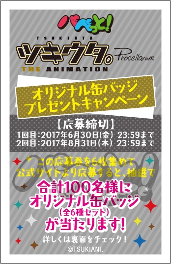 ※『パペっと!ツキウタ。 THE ANIMATION Six Gravity Ver.』と『パペっと!ツキウタ。 THE ANIMATION Procellarum Ver.』のどちらのシリーズからでも2つ同時購入した場合はキャンペーンの対象となる。