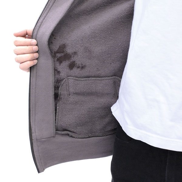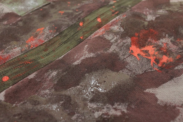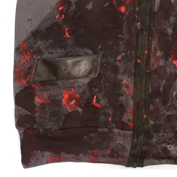 本商品の血をイメージしたペイントは1点1点、手作業で加工を施し、同じものは2着とないもの。一般的なシルクプリントとは違う、リアルな仕上がりとなっている。