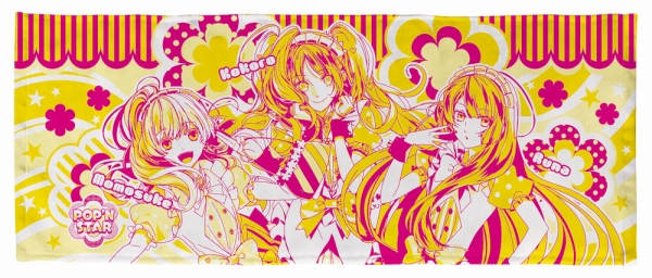 【POP’N STAR】がデザインされた大判タオル。ポップでキュートなデザインで使うと元気になれるかも!? 使っても良し、飾っても良しのアイテムです。