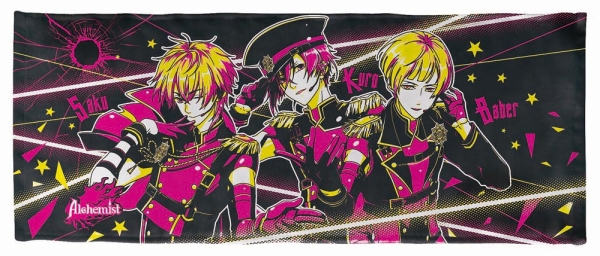 【Alchemist】がデザインされた大判タオル。黒を基調にビビッドな色使いがロックでカッコいい! 使っても良し、飾っても良しのアイテムです。