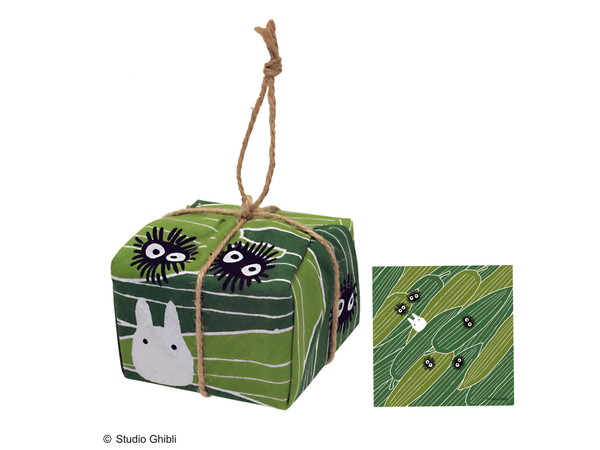 本商品は、手拭い専門店・かまわぬとコラボレーションしたもの。『となりのトトロ』の作中で、大トトロがサツキとメイに渡した笹包みのお土産をイメージし、『まめぐい』に麻紐で作った持ち手が付いている。